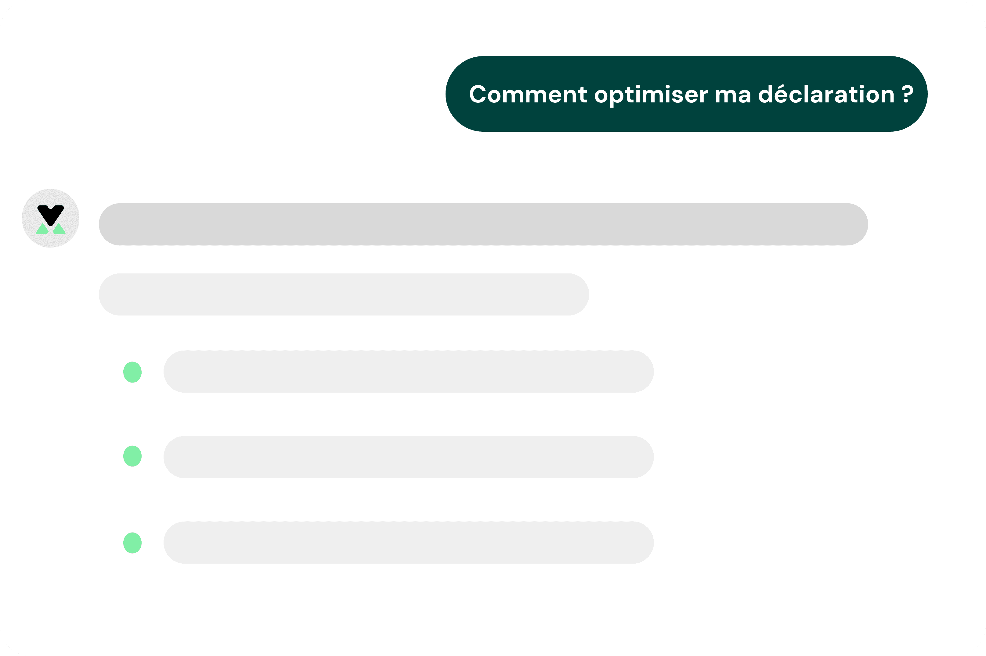 Posez toutes vos questions liées à votre fiscalité. Notre assistant fiscal IA vous recommande les meilleures actions à mettre en place en fonction de votre situation.
